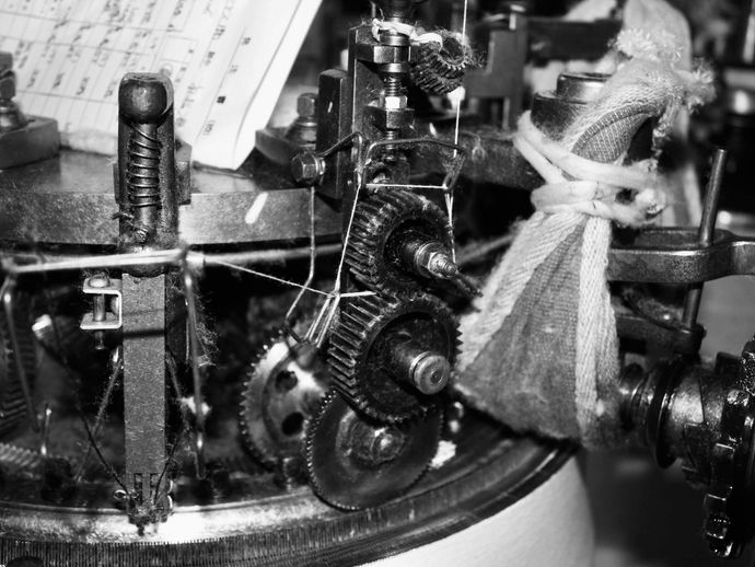 皆様 こんにちは 昨日は雪が降りましたね 気温が安定しないと体調崩しやすくなります 暖かくしてお過ごし下さい さて 引き続き修行中のお話 繊維掃除中に ふと目に入ったのが 吊り編み機本体に別の機械のようなものが繋がっていて その吊り編み機だけ特殊な動きをしていました...